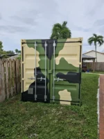 20ft Camouflage Storage Container For Sale: A brand-new 20ft storage container with custom camouflage paint – designed to combine durability, function, and stealthy outdoor appeal.